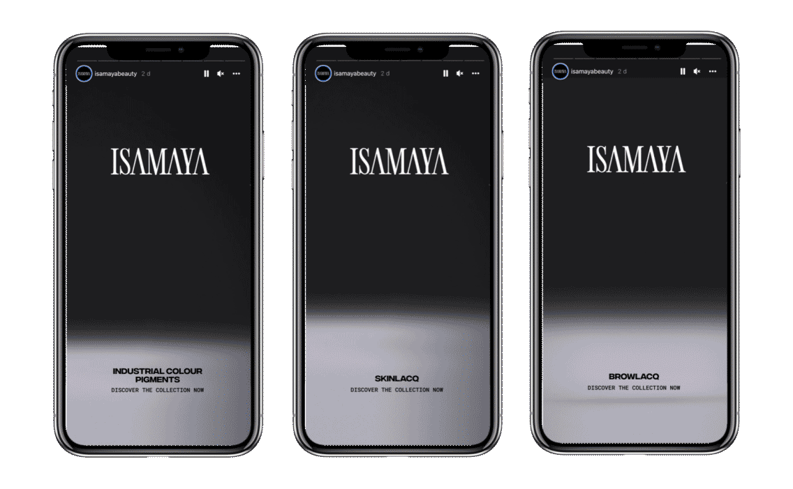 Social media assets for ISAMAYA Beauty, with images by Steven Klein.